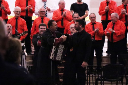 En introduction à ce concert, le chœur d’hommes les Joyeux Compagnons a présenté quelques pièces de son large répertoire avec des inspirations d’horizons lointains. Le public a également pu découvrir un nouvel opus : Wana Baraka, qui deviendra un incontournable du chœur d’hommes. En final, les deux groupes se sont unis pour interpréter Maroussia, un traditionnel ukrainien.