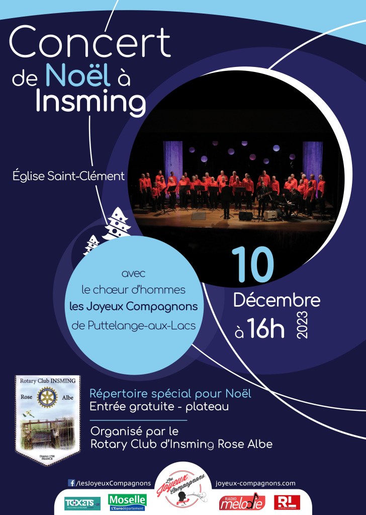 Le choeur d’hommes les Joyeux Compagnons de Puttelange-aux-Lacs donnera un concert de Noël le dimanche 10 décembre à 16h00 à l’église Saint-Clément de Insming. Au programme, des chants traditionnels qui vous transporteront dans la magie de Noël. Sous la direction de Nicolas Trinkwell, les choristes interpréteront des chants en français, allemand, anglais, ainsi que d’autres surprises à ne pas manquer. Tantôt a cappella ou avec l’accompagnement d’instrumentistes, tantôt en ensemble vocal ou avec des solistes, les Joyeux Compagnons varient les interprétations pour profiter pleinement de la polyphonie des voix d’hommes.