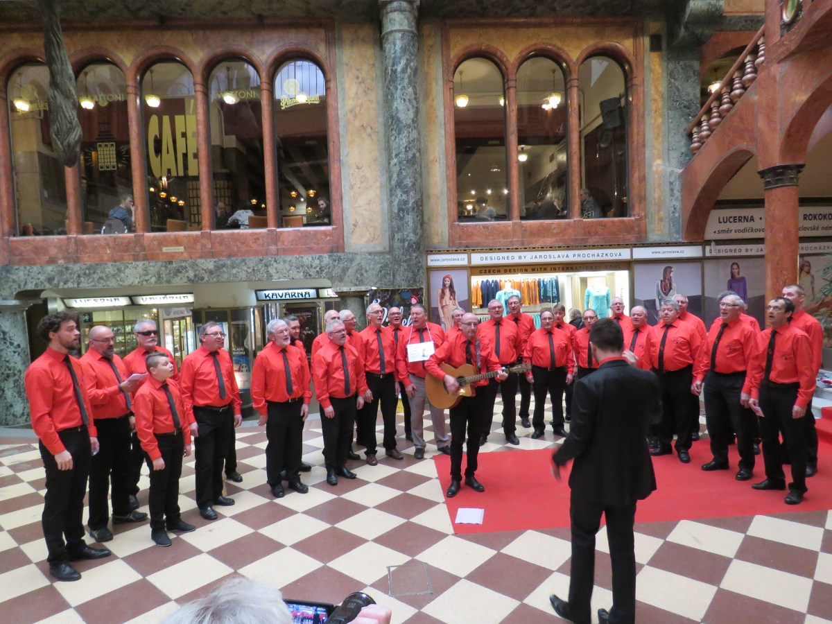 Devant le café Lucerna