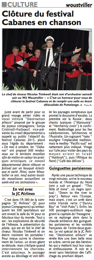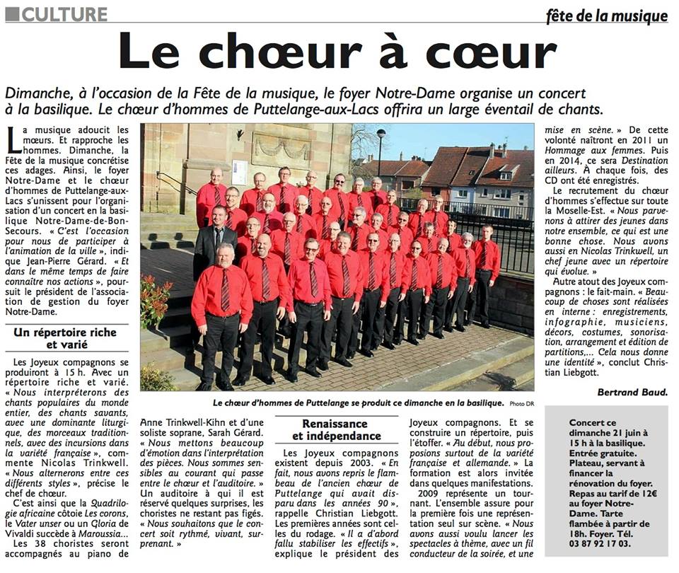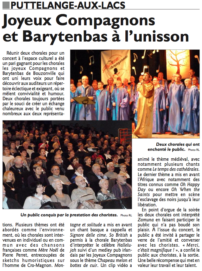 Soirées de gala chant choral annuelles avec Barytenbas de Bouzonville les 28 & 29 novembre 2015 :