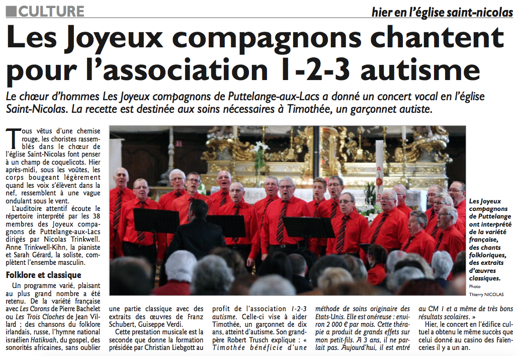 Concert à l’église Saint Nicolas de Sarreguemines pour l’association 1-2-3 autisme le dimanche 10 mai 2015 :