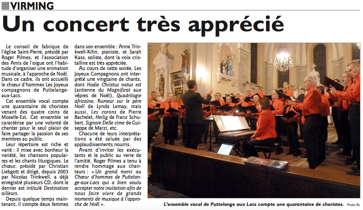 Concert de Noël à l’église de Virming, le samedi 12 décembre 2015 :