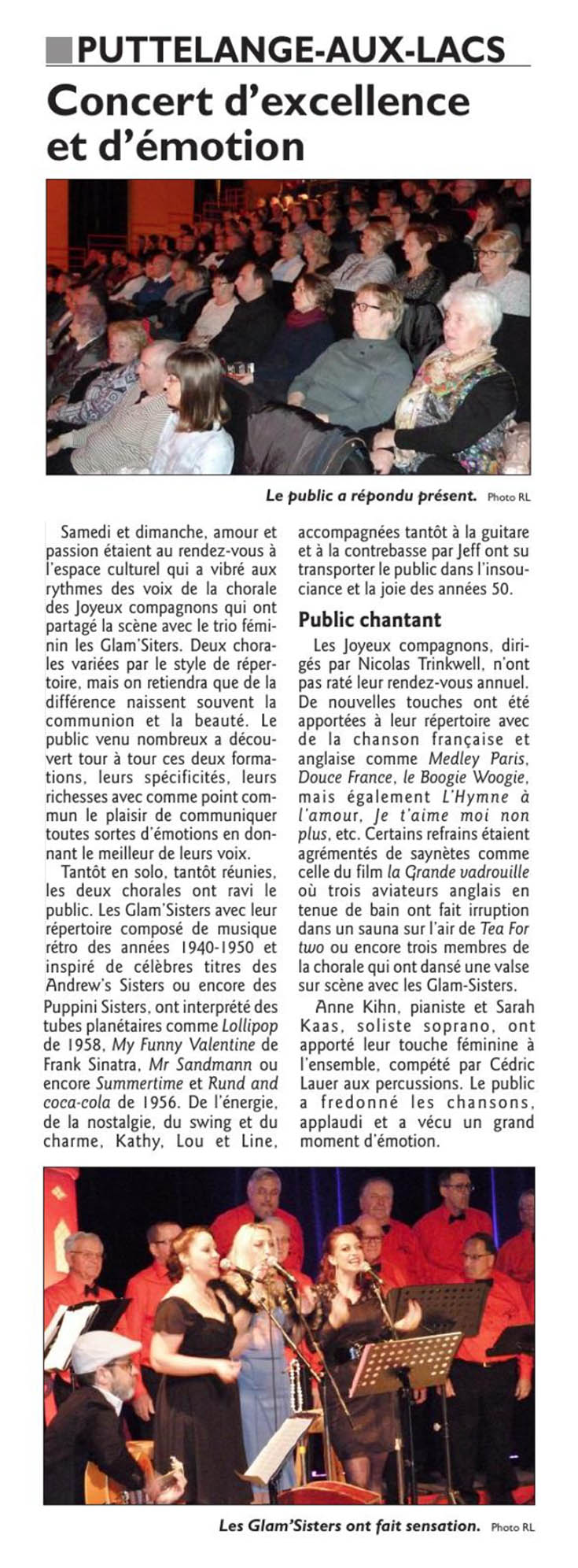 2017 Revue de presse 2017 Spectacle « LOVE » avec The Glam’Sisters les 18 & 19 novembre 2017 à Puttelange-aux-Lacs : Concert à Farschviller le 19 mars 2017 : Assemblée générale du 24 janvier 2017 : Partager :TweetJ’aime chargement…